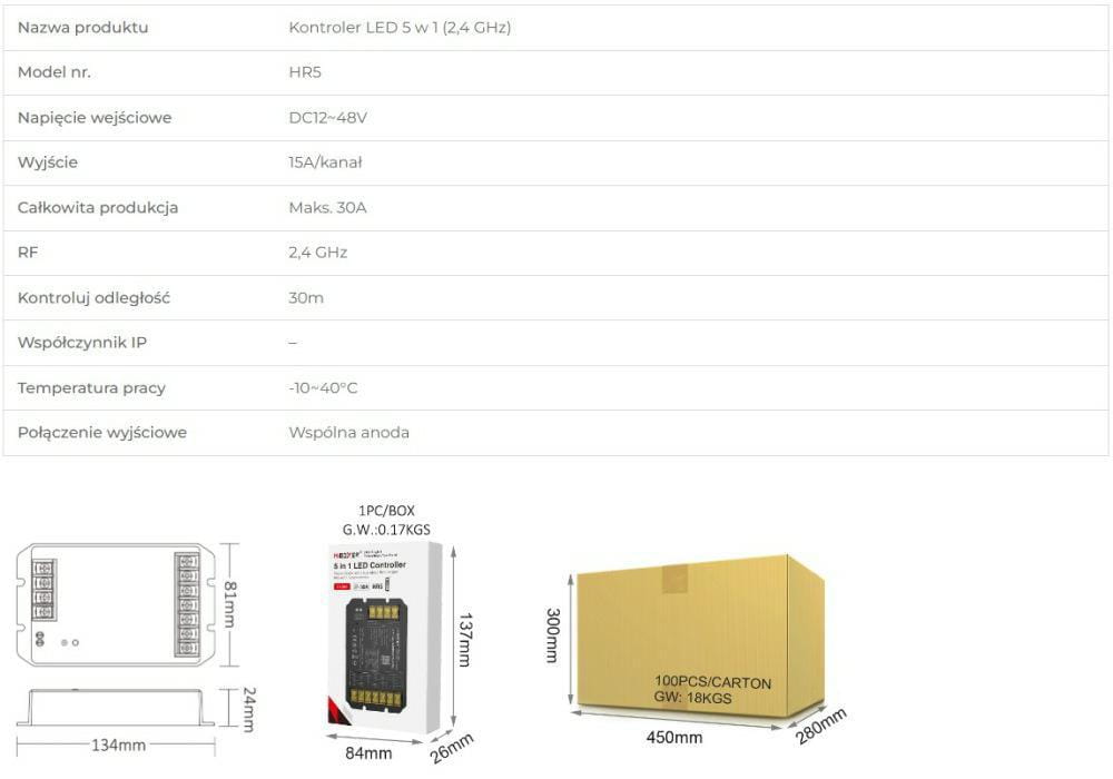 Kontroler Sterownik do LED MIBOXER HR5 5w1 30A 12-48V NAJMOCNIEJSZY Milight PUSH