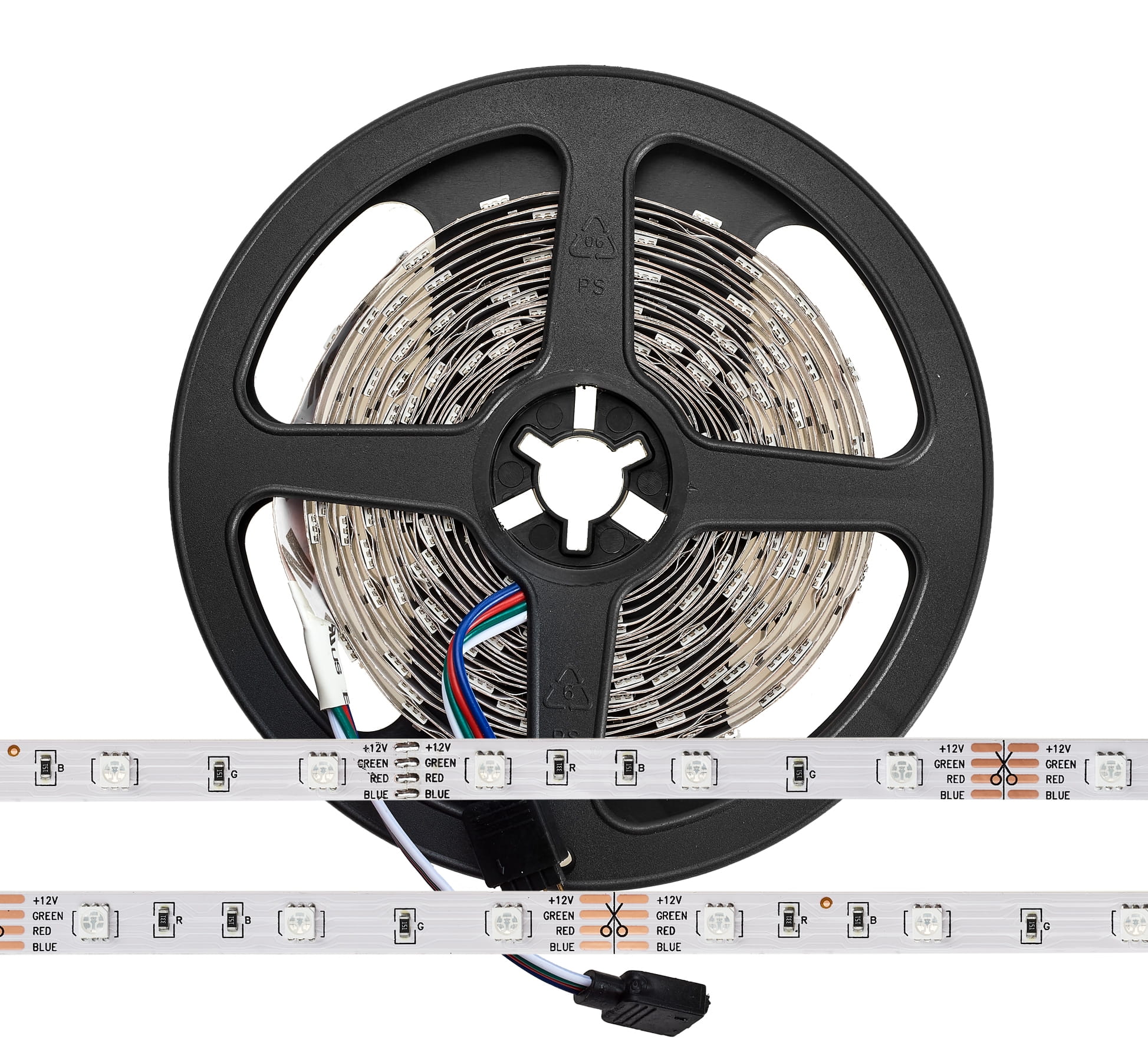 - Długość: 5 metrów, taśma zakończona przewodem dwużyłowym, nawinięta na rolkę i zapakowana w folię antystatyczną